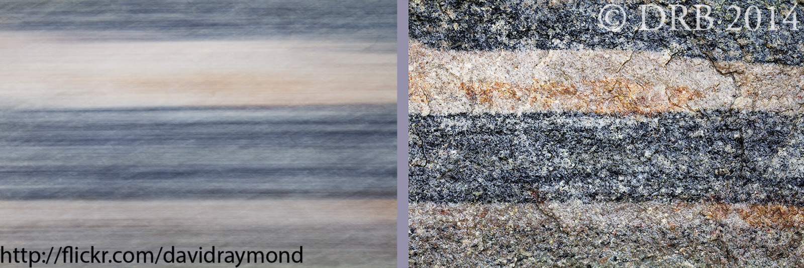 Having an anti-shake mechanism on the lens or camera is helpful to steady the viewfinder and get smoother horizontal or vertical lines. In this case, Tamron’s 4-stop Vibration Control was set in the ON position, and the results of the VC along with a fluid handheld panning motion lead to straight horizontal lines within in the photograph. I did manually pre-focus my macro lens for this photo, although “One Shot” autofocus mode as Canon calls their stationary shooting mode would have worked as well. This particular subject matter worked well with a horizontal panning motion because of the preexisting horizontal lines in the subject (a simple common chunk of rock outdoors).