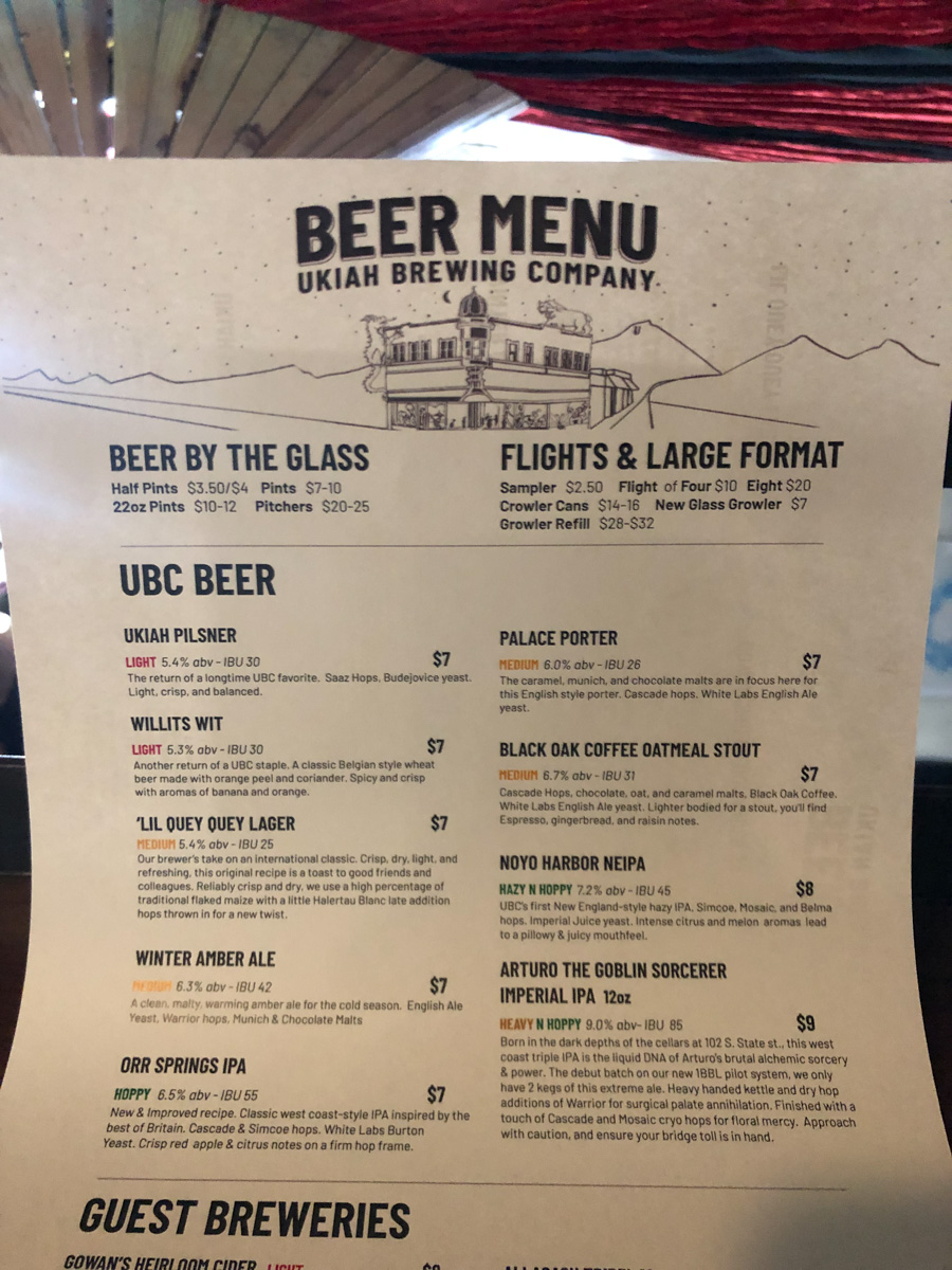 As we departed Humboldt Redwoods an unexpected snow squall (not pictured) blew across both Route 1 and 101. Our brave Hyundai Ioniq pushed onward heading south through Ukiah as we circled back towards airbnb #1 in Manchester. Lisa and I stopped at Ukiah Brewing Company for a bite to eat and to taste the local brews. ⬇️