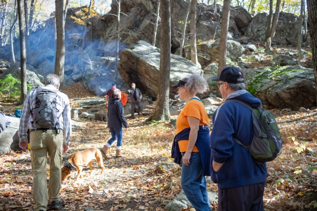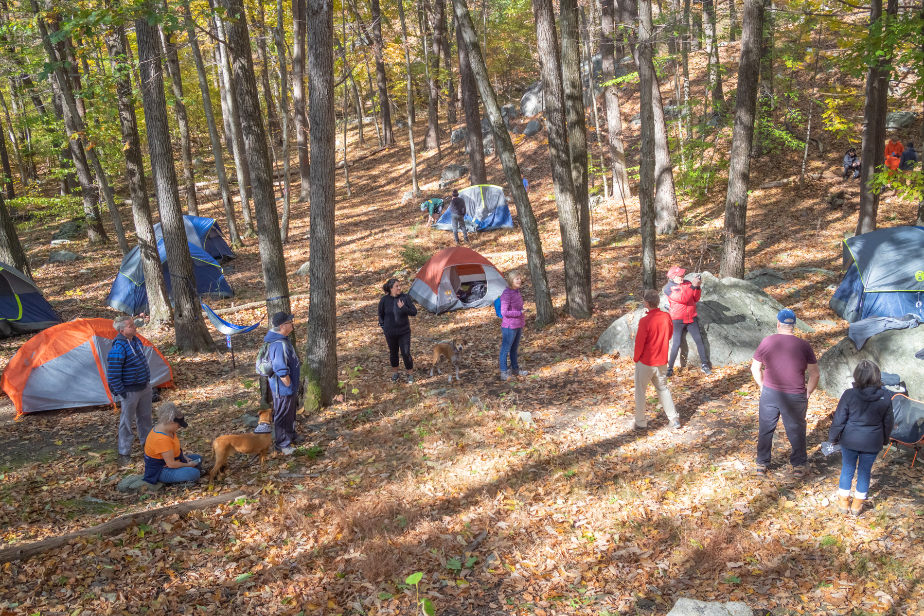 This past Saturday, POWWW lead a group of hikers from Old Beach Glen Road up through the historic Hog Pen area of Jonathan’s Woods. Brisk morning weather quickly gave way to a sunny and mild October day. We came across Denville Scouts Troop 118’s annual camping trip in the Hog Pen (by permission from the park commission). Great to see so many people outdoors enjoying our local natural resources!